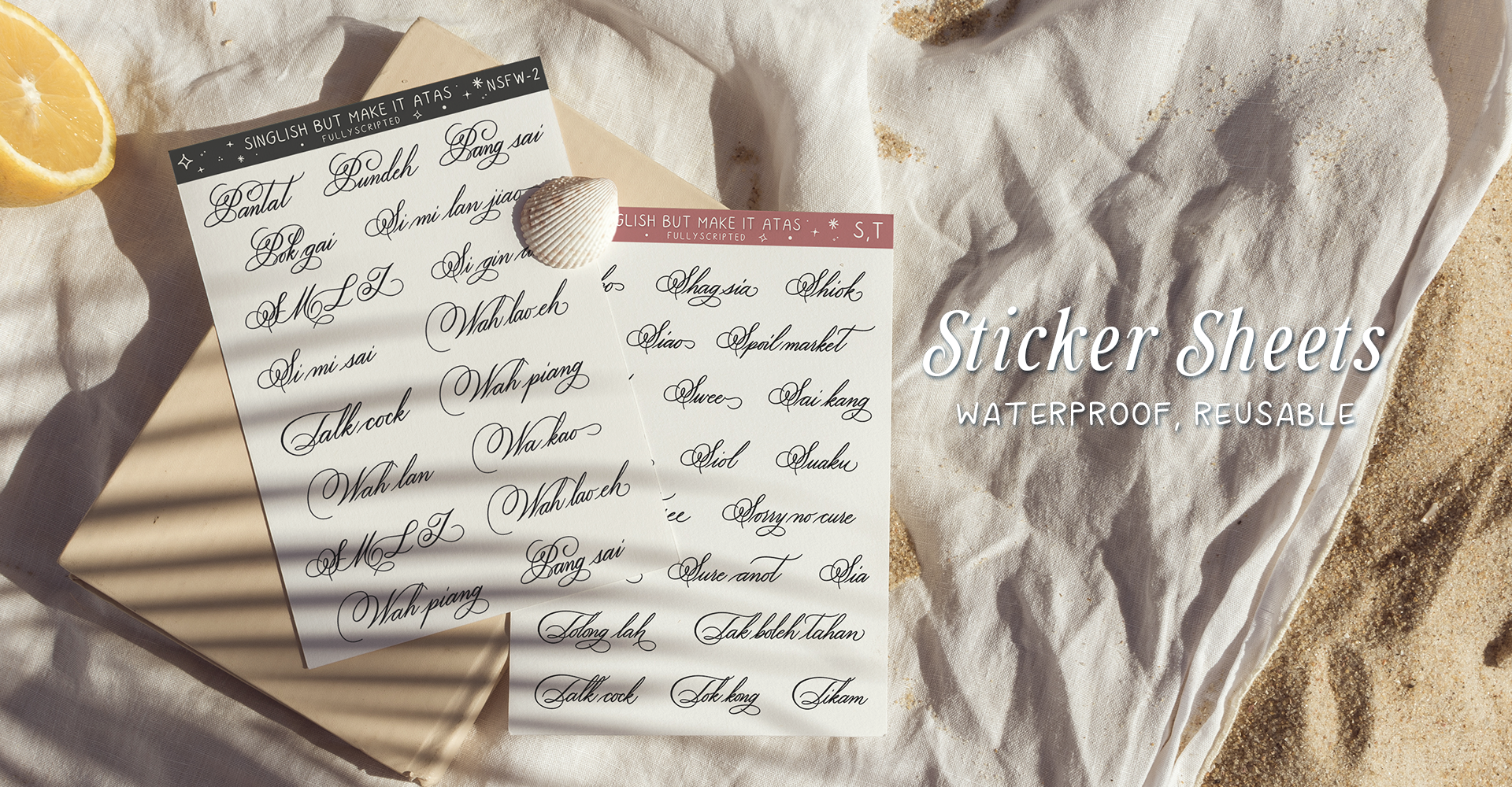 Welcome to Fullyscripted, where calligraphy meets sass and dark humor. We create unique, handcrafted items like stickers, prints, notepads, coasters, and wooden pins, blending rustic charm with cheeky wit.