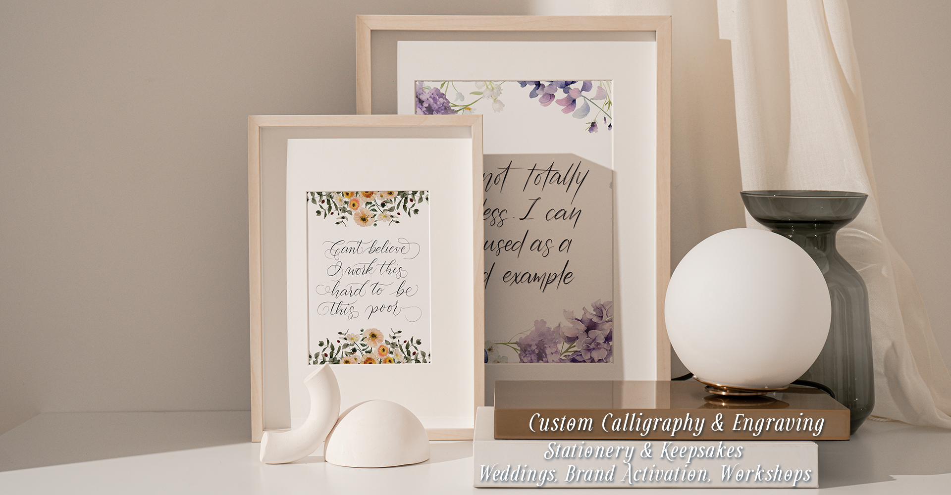 We combine modern calligraphy with rustic charm and dark humor to create bold, expressive pieces. Designed for those who cope through wit and sarcasm, our work turns everyday items into beautifully imperfect statements which are honest, cheeky, and unapologetically real.