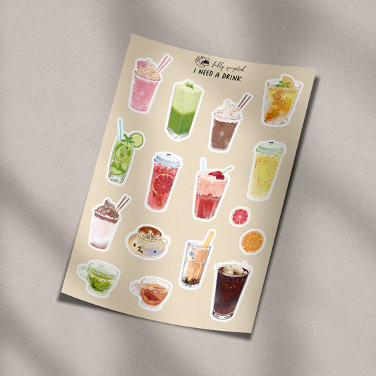 I Need A Drink Vinyl Sticker Sheet